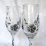 Paharele personalizate pentru miri sunt pictate manual, cu vopsea speciala pentru sticla.